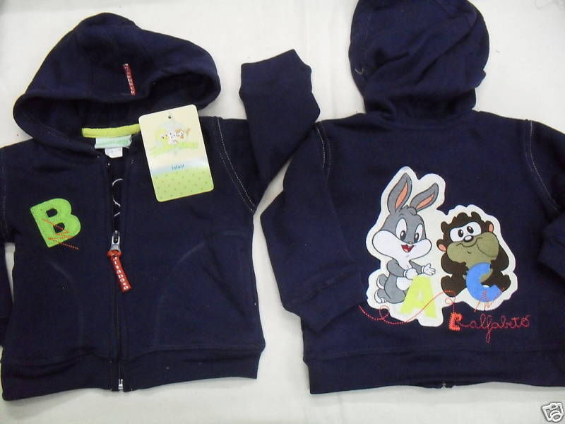 Nuovo FELPA CARDIGAN LOONEY TUNES CAPPUCCIO BLU TG. L = 3 ANN