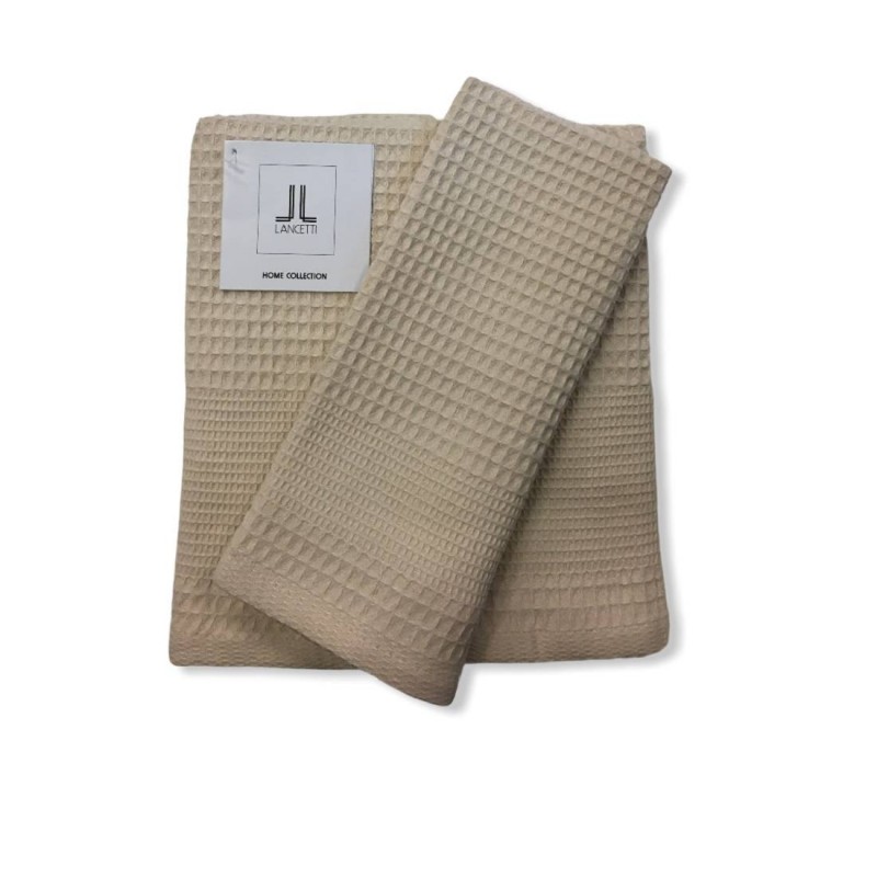 Set Asciugamano Nido D' Ape Con Ospite Lancetti Puro Cotone