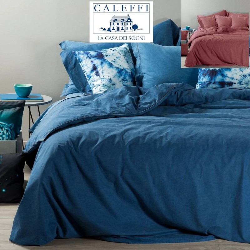 Completo Copripiumino Caleffi Matrimoniale Jeans Puro Cotone Completo