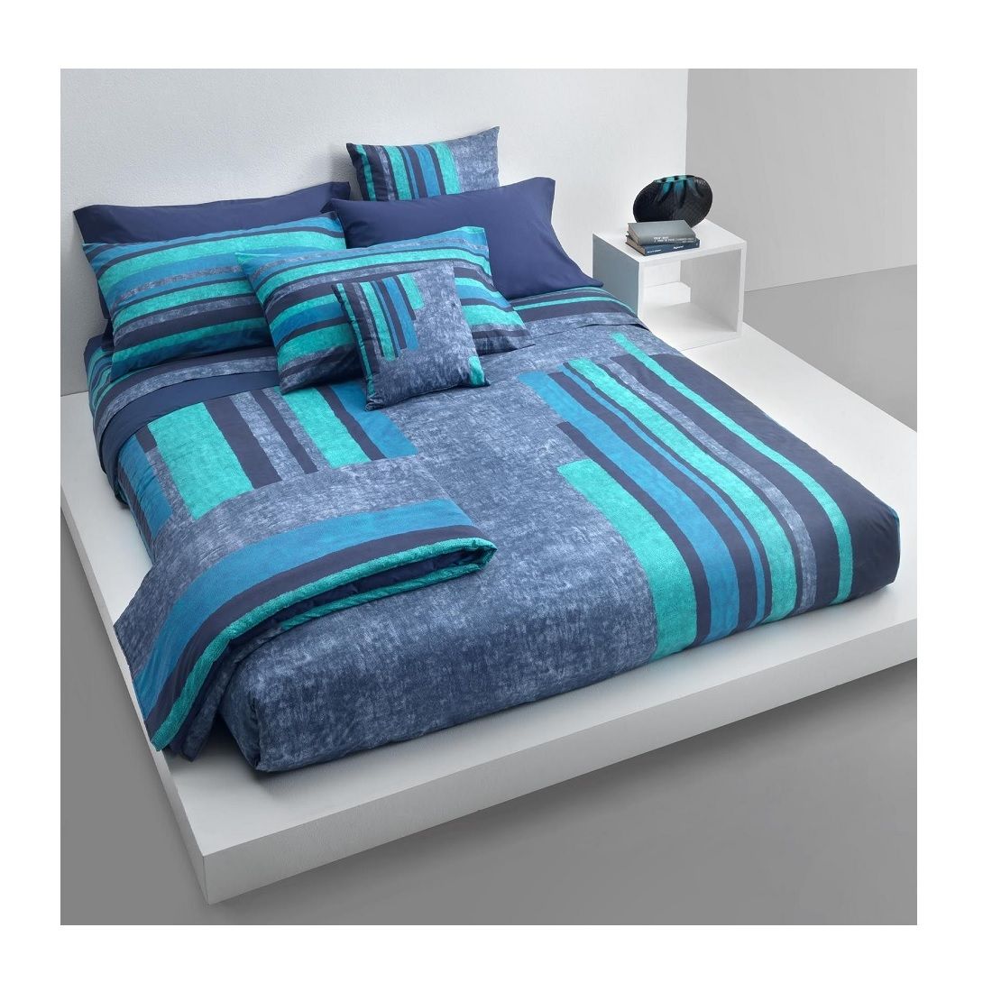 Completo Copripiumino Carrara Matrimoniale Must Percalle Puro Cotone Blue