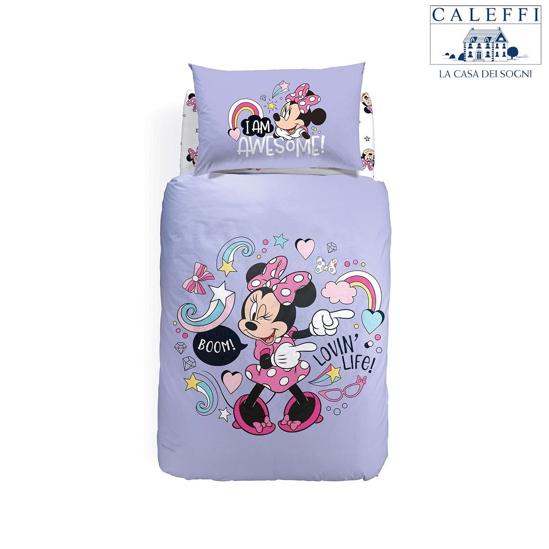 Completo Copripiumino Minnie Disney Caleffi Minnie Boom Singola Puro Cotone