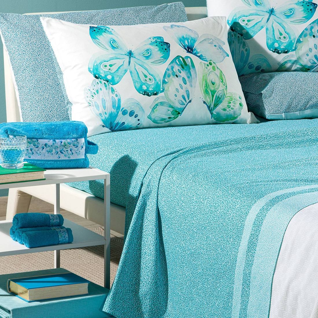 Lenzuola Caleffi Matrimoniale Farfalle Anice Puro Cotone