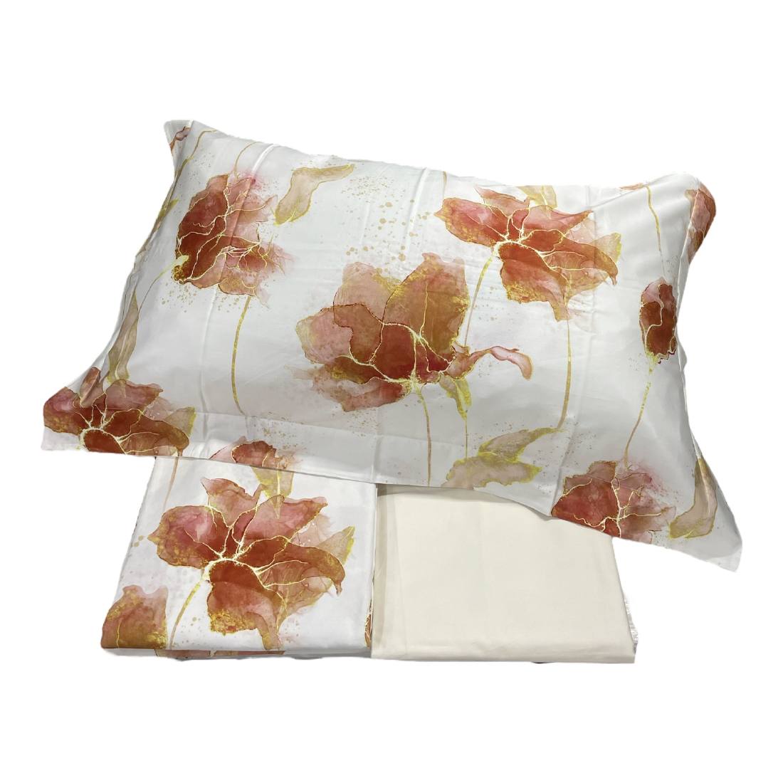 Completo Lenzuola Copriletto Mirabello Matrimoniale Lenzuolo Golden Flowers Cotto Bianco