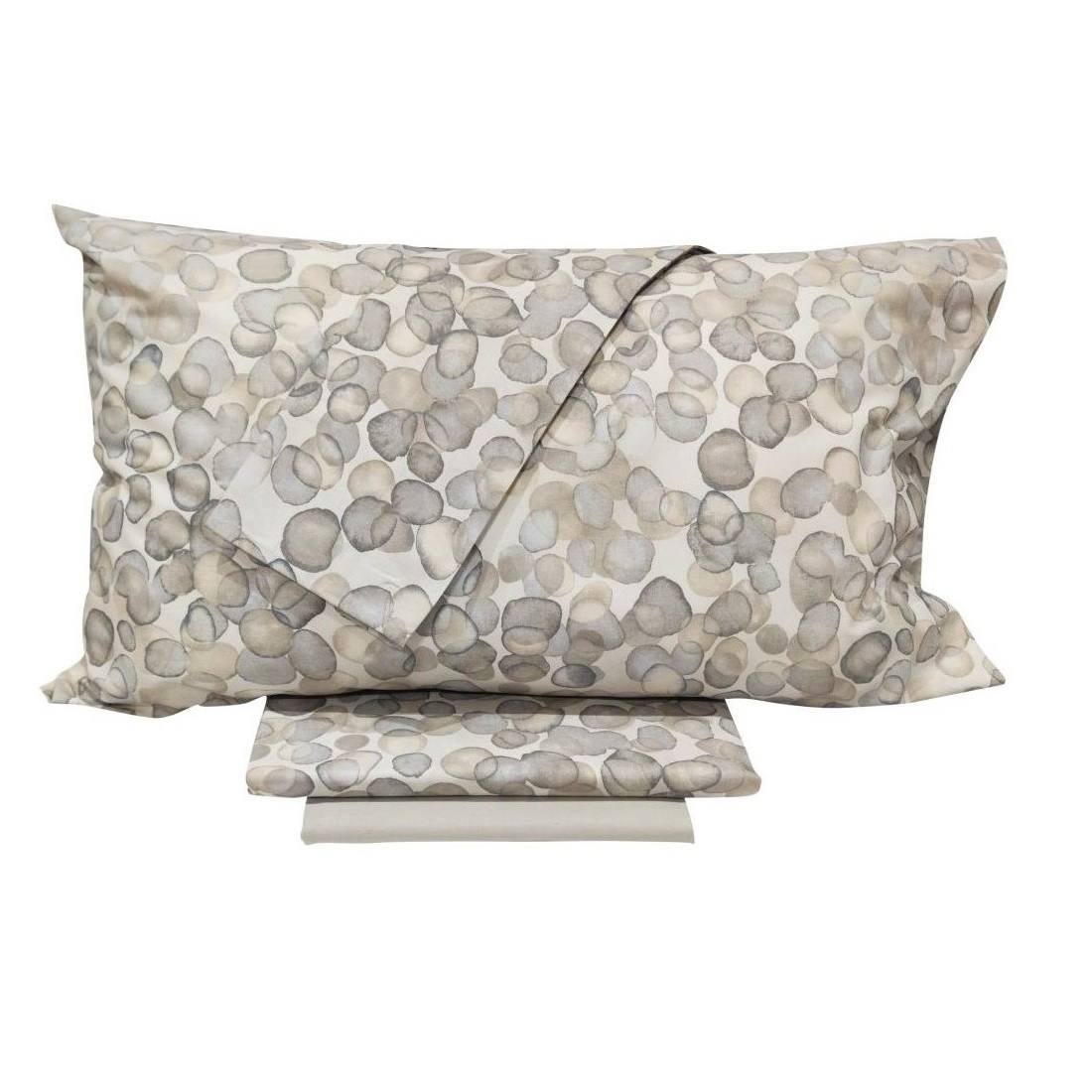 Completo Lenzuola Fazzini Matrimoniale Puro Cotone Made in Italia Bolle Grigio