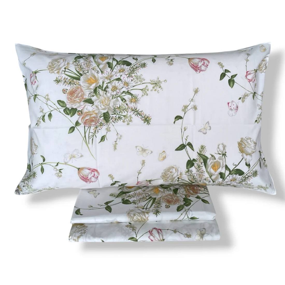 Lenzuola Mirabello Bouquet Erika Fonfo Bianco Matrimoniale In Percalle