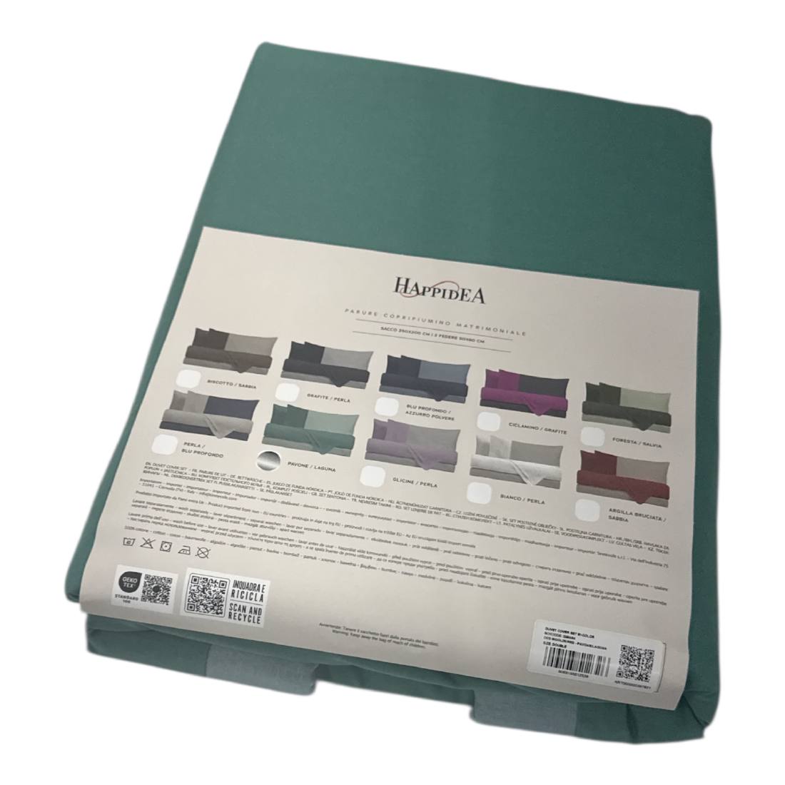 Parure Copripiumino Happidea Matrimoniale Bicolor Pavone Laguna Double Face