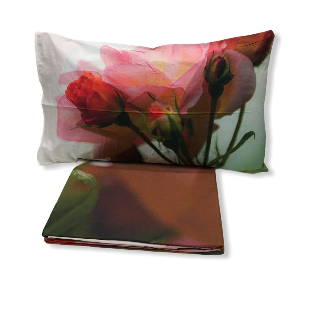 Nuovo Parure Copripiumino Matrimoniale Stampa Digitale Boccioli Puro Cotone