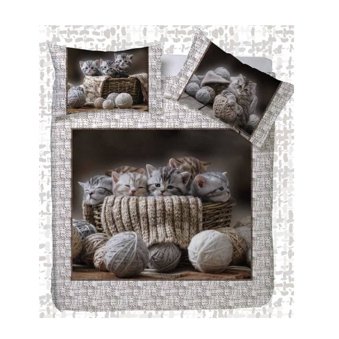 Parure Copripiumino Matrimoniale Stampa Digitale Happidea Gomitoli Gattini New