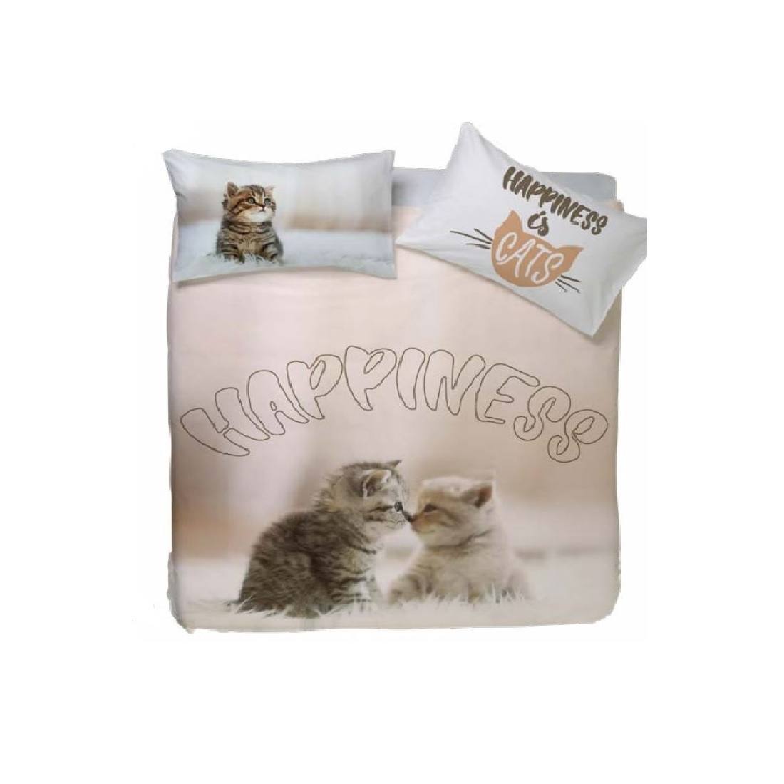 Parure Copripiumino Piazza e Mezza Stampa Digitale Happidea Gatti New