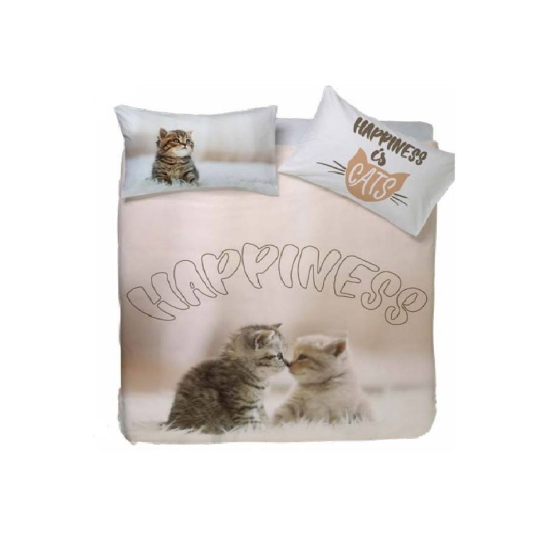Parure Copripiumino Singolo Stampa Digitale Happidea Happiness Gatti New
