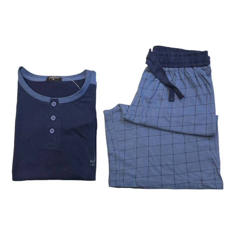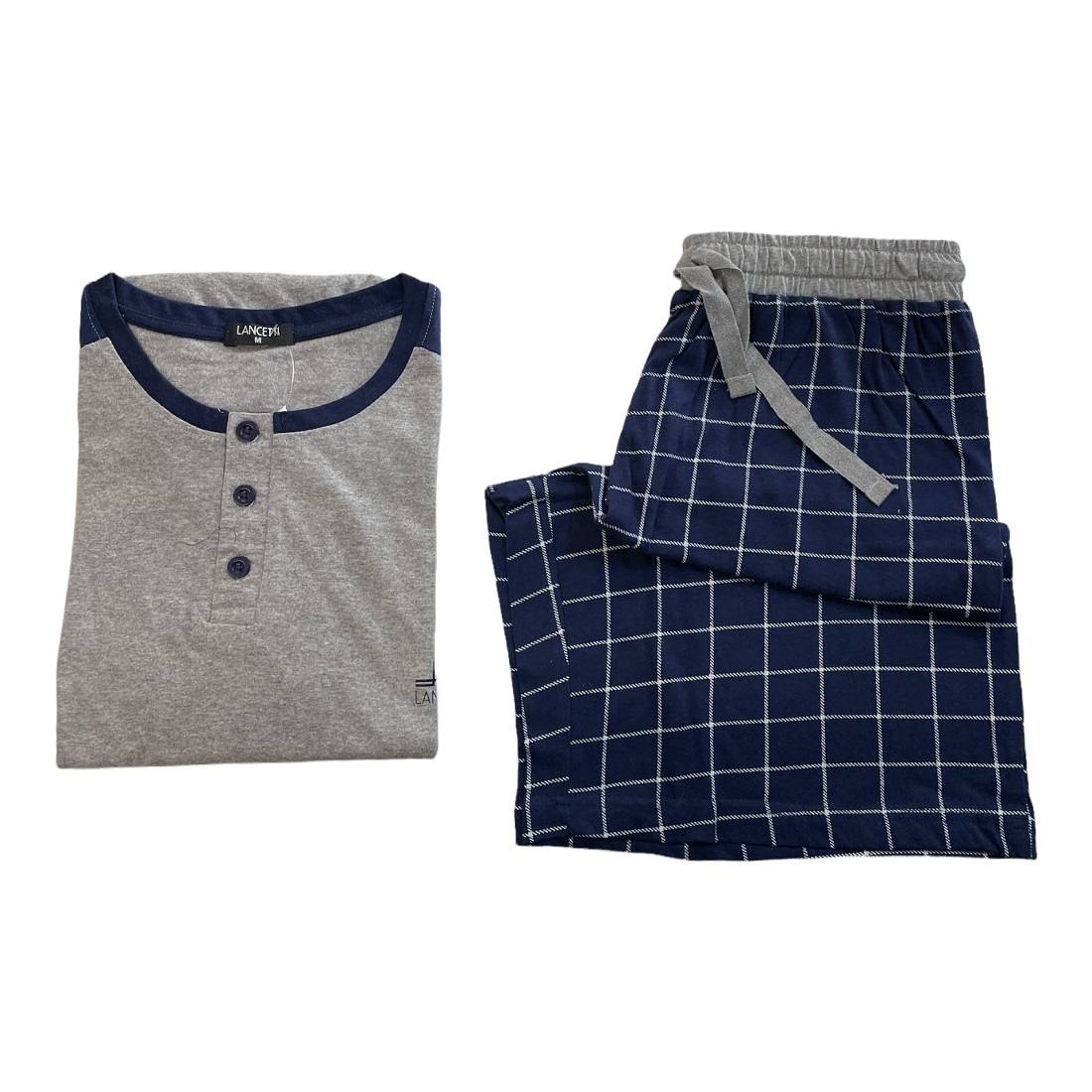 Nuovo Pigiama Uomo Corto Lancetti Puro Cotone LSM00072