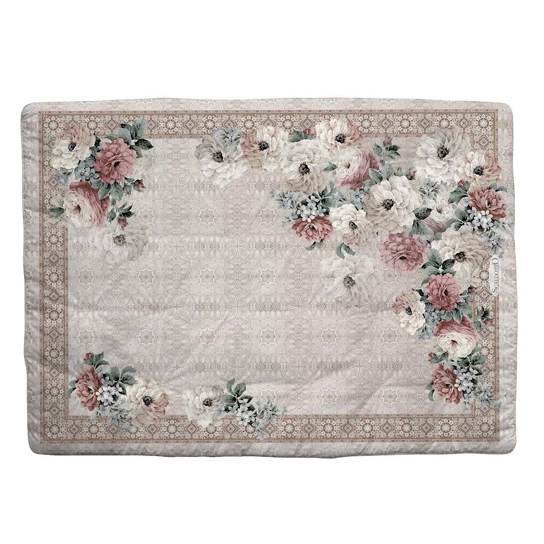 E' realizzato con un’imbottitura in fibra di poliestere anallergica e tessuto mano seta.