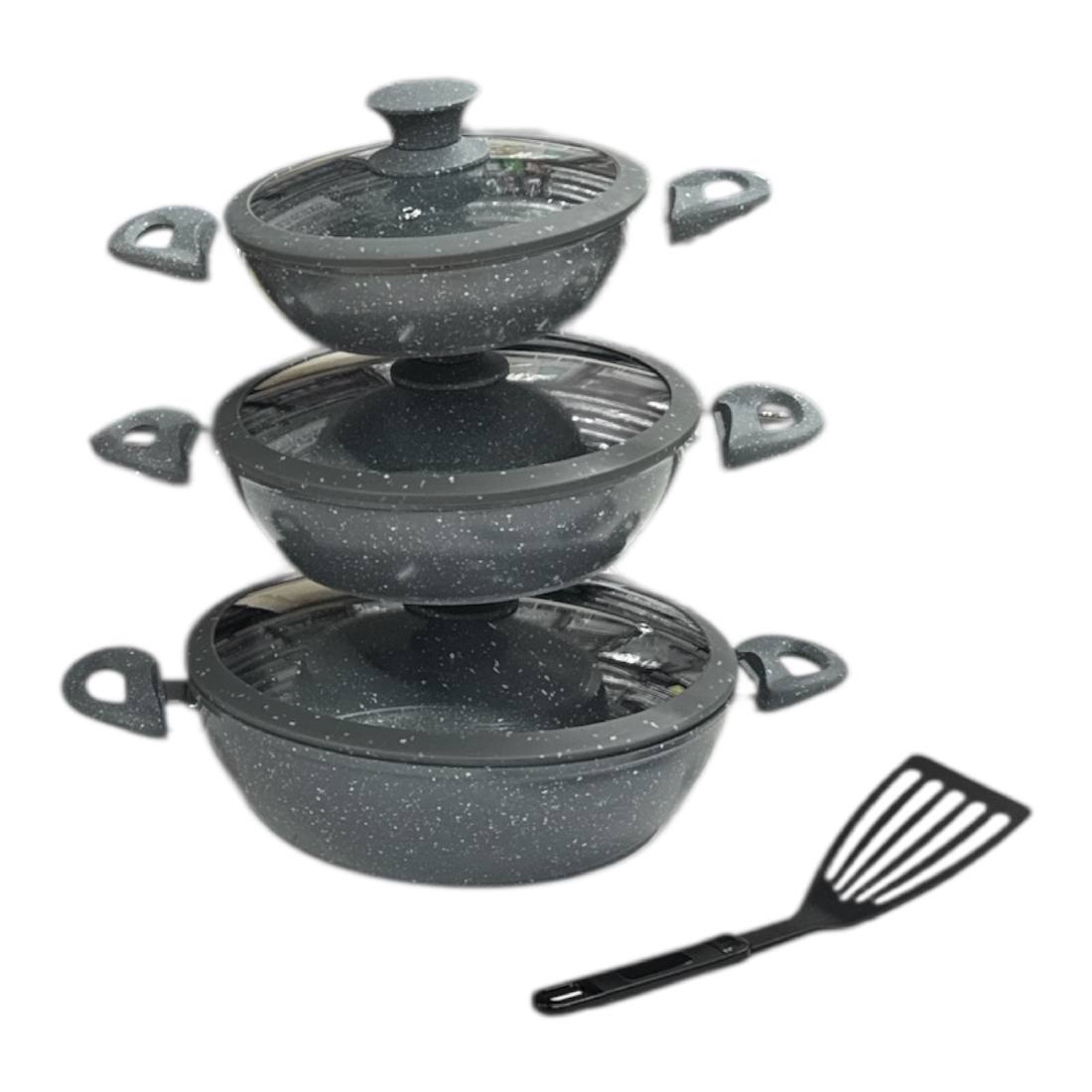 Nuovo Set Tegami 7 Pezzi Rivestimento In Pietra Con Coperchi Antiaderente