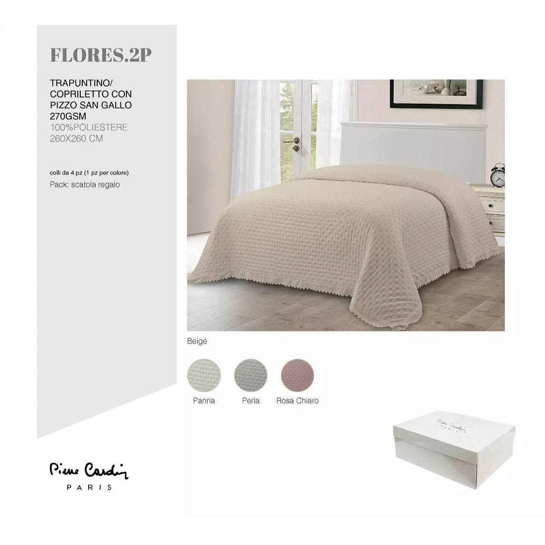 Trapuntino Copriletto Matrimoniale Pierre Cardin Con Pizzo San Gallo Articolo Flores